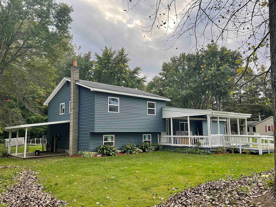 This is the home you've been looking for! This completely remodeled 4 bedroom, 2 bath Tri level style home with over 2,000 sq. ft. of living space is nestled on 2 wooded acres with an oversized 25' x 33' garage with loads of storage. This home features newer siding, & new windows, new furnace and updated kitchen with oak cabinets and new countertops. Remodeled bathrooms, and fresh paint throughout, with new vinyl planking floors and new carpeting. This home features large rooms sizes, with a huge living room great for entertaining. Enjoy a Relaxing evening on your 16x18 covered front deck or one of the rear decks. This home has first floor laundry and a finished lower level with family room and 4th bedroom with its own private covered deck. The front yard is completely fenced with gates and there is also a large barn in the backyard.