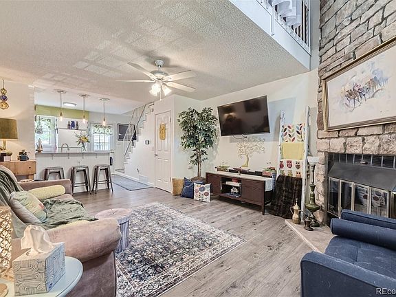 This great Lakewood townhome is in a quiet location near a park. The reserved parking space is right in front and there is a private fenced patio area out the back door. Large living room can accommodate an eating space at the kitchen end and is open visually to the kitchen over the breakfast bar. The living room also has a fireplace with rock facing that extend all the way up to the high ceiling. The kitchen has a pantry closet and is open to the living room for an open feel. The loft style bedroom suite has a walkin closet, conveniently located laundry closet with washer and dryer, and full bath with the sink area separate from the bath and toilet area. There are also drop down stairs to an attic for storage and a storage closet on the back patio area. The community pool is an easy walk away and the furnace and water heater are newer. This clean townhome is move in ready and convenient to downtown, DTC and the mountains. Nobody above or below makes this a great choice over a condo at a reasonable price and parking right outside the door.