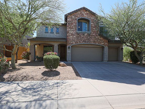 Embrace the opportunity to make this meticulously cared for and inviting Pulte Home your own, nestled within the highly coveted WestWing Mountain Community! This residence boasts a first-floor bedroom and full bath, complemented by a split primary suite, three additional generously proportioned bedrooms, and a welcoming loft on the upper level. Abundant storage awaits in the form of spacious walk-in closets in each bedroom, ensuring your organizational needs are met. The heart of this home is adorned with a captivating two-way gas fireplace that effortlessly unites the family room and dining area, bestowing a sense of character and charm to your everyday living. The recently renovated kitchen features quartz countertops, an exquisite herringbone-tiled backsplash, and stainless steel appliances. The gas cooktop, wall microwave/oven combination, and walk-in pantry will delight the inner chef in you. This residence's grandeur isn't limited to its interiors; it extends to a three-car garage, spectacular mountain vistas, and a delightful backyard. The low-maintenance outdoor space boasts artificial turf, an inviting shade tree, large extended paver patio, and an elevated seating area, perfect for entertaining cherished guests. Nestled on a tranquil cul-de-sac street, this home exudes irresistible curb appeal and charm from every angle. Don't let this opportunity pass you by!