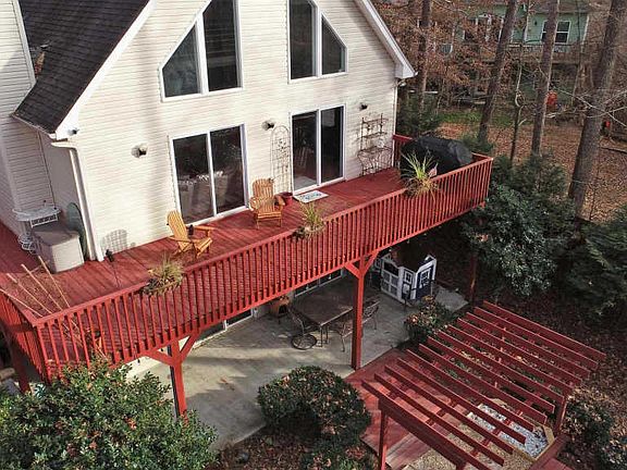 Live the good life on Lake Lanier in this updated & move-in ready lakefront home in sought-after Forsyth Co. On the main floor, enjoy an open floor plan featuring a recently renovated kitchen with new appliances, 2 BRs, 2 BAs, an office & inviting living room space with a stone fireplace. Large owner's suite is upstairs & terrace has convenient BR, BA & rec room. You'll love entertaining in the new outdoor kitchen complete with grill & smoker space, a lounge area & lake views, all surrounding the built-in firepit. What a great, safer way to entertain while social distancing! Lovely pergola stands over unique sand & garden box areas. Gentle path to the shared dock with a party deck in good water. Don't miss the big workshop, perfect for DYI projects & kayak storage. Excellent location by water or land, close to shopping, dining, Port Royal Marina, Pelican Pete's & public parks.