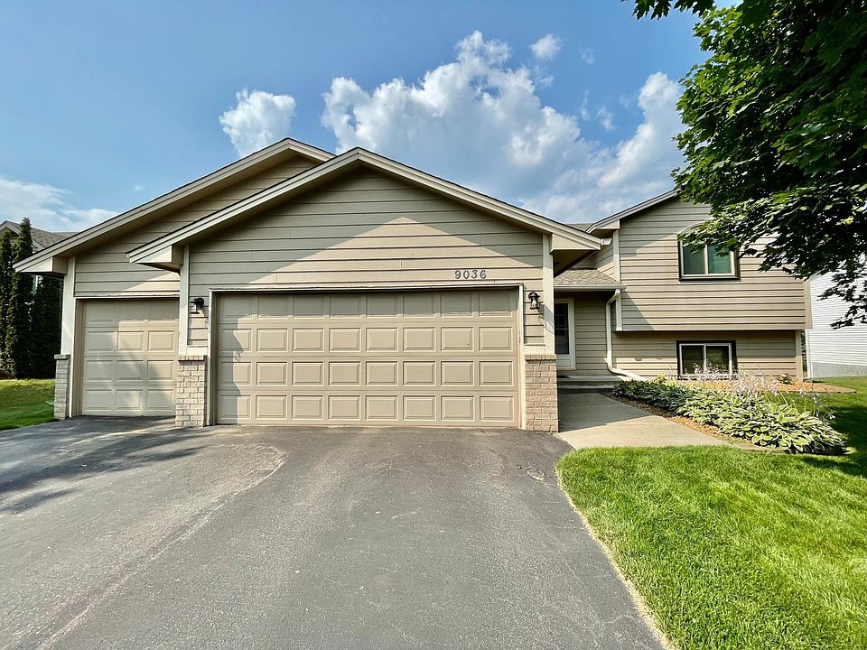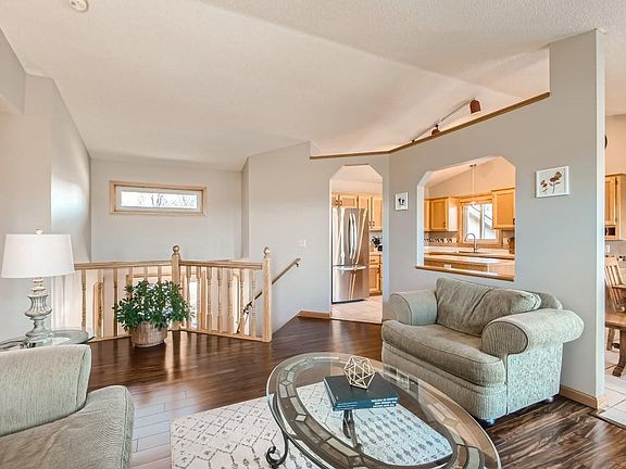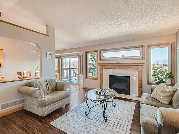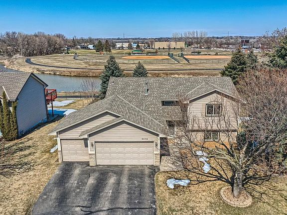 Beautiful pond views and a 24-acre park in your backyard! Upper level includes a vaulted living room, cozy gas fireplace, kitchen island, newer SS appliances, a deck right outside for easy grilling and entertaining, primary bedroom with a walk-in closet, and a second bedroom. The lower level has a family room, 2nd gas fireplace, wet bar w/mini fridge, walk-out to concrete patio prewired for a hot tub, 2 bedrooms, and a 3/4 bathroom. Very well-maintained home, with many expensive updates completed – bamboo flooring in the living room, new carpet installed in the bedrooms, roof in 2019, triple pane windows and patio doors in 2018 with transferable warranties (see supplements). Store your toys and tools in the attached 3 stall insulated garage and or outdoor shed. The in-ground sprinkler system keeps your lawn perfect and don't forget about the variety of beautiful perennial flowers. The nearby walking path & footbridge makes easy access to Schroeders Acres Park.