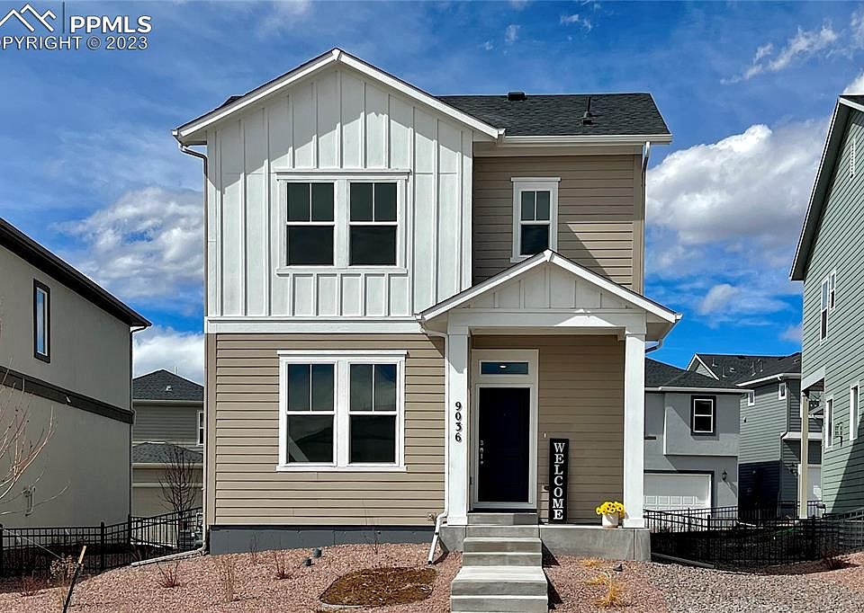 Located in desirable Wolf Ranch with 1st class resort style living and amenities, award winning D20 schools, close to shopping, dining, and the best of Northern Colorado Springs. Outdoor concerts, food trucks at the park, miles of walking trails, pool and Wolf Lake make this community a destination. The bright and light chef’s kitchen features stone gray upper cabinets, quartz countertops, tile backsplash and upgraded appliances in the open concept living area with its cozy fireplace is the place friends and family will gather to make memories. An open study is the perfect work from home office. Your Owners Retreat Ensuite bathroom features a spa worthy Super Shower with rain head. The fully finished basement with 9’ ceilings completes this home with a game room, 4th bedroom and full bath. The HOA maintained fenced, Xeriscaped yard allows you to “lock and leave”. Lots of extras – ceiling fans, active radon mitigation, tankless water heater and more. Tour this beautiful home, built by a renowned family-owned builder known for Building Dreams and Enhancing Lives with high quality energy efficient homes for over 45 years. Revel Crossing at Wolf Ranch is adjacent to Legacy Peaks Elementary. January move-in ready!