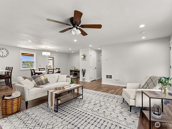 Move right in! Warm and inviting, this completely updated 3 bedroom (plus bonus room) has fresh paint, new flooring throughout, including laminate, new quartz counters, new lighting, new trim and a cozy fireplace for those chilly days. It doesn't stop there! Step out on to the 34'x16' covered patio, complete with cedar T&G ceiling and custom lighting. So many extras to mention including Insta-Hot water, two separate EV chargers along with two 30amp RV hookups (one with water). Prewired for both a generator and a hot tub. The heat pump will keep you comfortable year round. The huge 24'x50' 2 bay shop with 10' doors and led lighting will handle your biggest projects! Additional 10'x10' storage shed.