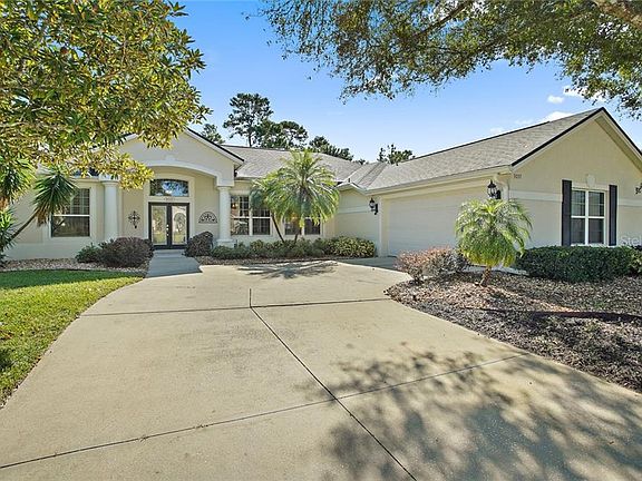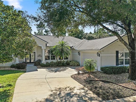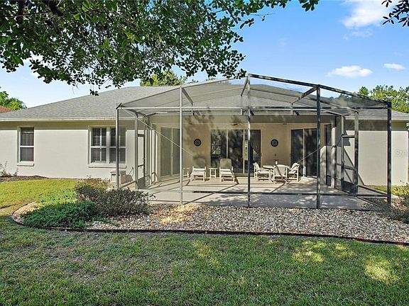 COUNTRY CLUB OF MT. DORA, PRISTINE 3/2 HOME WITH LANAI, OVERSIZED GARAGE AND COST SAVING UPDATES! Welcome home to this desirable community with tree-lined streets, walking trails, championship 18-hole golf course, clubhouse, restaurant, swimming pool, pickleball, and monthly activities! Close proximity to every amenity including charming, historic downtown Mount Dora. Attractive stucco facade, gabled roof, arched front portico, 2-car (23x25) side entry garage, and mature landscaping. A/C installed in 2012, water heater, refrigerator and microwave in 2013, and roof in 2014. Nest thermostat, Ring doorbell, wired for surround sound, plantation shutters. Leaded glass doors open into this light and bright, open floor plan with neutral tones, carpet/tile throughout, 12 FT ceilings in living, family, kitchen, master and 10 FT ceilings in guest BRs. Spacious dining and living rooms with recessed lights, arched doorways, art niches and glass slider to lanai. Open concept family room and eat-in kitchen perfect for entertaining. Kitchen has 42 IN. cherry wood cabinetry, prep island, breakfast bar, dining nook, and pantry. Family room has built-in niches and glass slider to lanai. Master BR with walk-in closet, glass slider to lanai and private bath with soaking tub, expansive sink vanity and tiled shower. Guest BRs share full hall bath with tub/shower. Laundry room with loads of storage and utility sink. 19x21 covered, screened lanai and private back yard with no rear neighbors. Your dream home awaits!