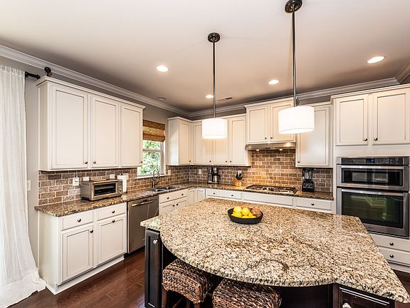 Gorgeous 5BR home with a rocking-chair front porch in sought-after Barber Rock! You are greeted with gleaming hardwood floors downstairs, inviting formals with arches. Bright open eat-in kitchen with entertaining island, 5 burner gas cooktop, pull-out drawers, opening to family room with big windows. Bed/bath on main level perfect for guests! 4BR+bonus up including vaulted master suite w/garden tub, dual vanity. Outside oasis features pergola with shades and wired for fan, water feature, paver stone patio, gorgeous low-maintenance landscaping and fenced yard. Irrigation front & rear w/Rachio internet controls and rain sensor. Fantastic neighborhood with pool, park, holiday events. Low SC taxes yet quick access to Charlotte.