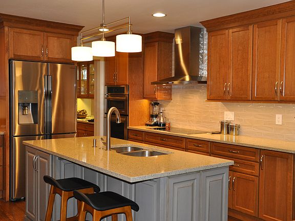 Beautifully remodeled kitchen with quartz counter tops, natural hardwood floors, new Jenn Air applicances including 36" induction cooktop with 5 radiant elements, wall mount oven/convection microwave, Trifecta dishwasher, Canopy hood plus custom cabinets with soft to, Samsung 4 Door French Door Refrigerator, Custom Cabinets with touch closing, deluxe lighting system including LED lighting, built in kitchen desk area.