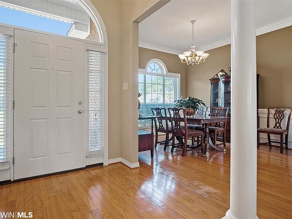 Don't miss this lovely custom built, move in ready, colonial brick home in Chamberlain Trace. Pride of ownership shines throughout. Not a detail was overlooked including: hardwood floors, tres ceiling, double crown molding, recessed lighting, gas log fireplace and attic storage. This custom home was built with multi generational living in mind. All the bedrooms have an ensuite bath and are split from each other providing maximum privacy. The master bedroom, two additional bedrooms and an office are all on the main floor. One of the additional main floor bedrooms has a door wide enough to accommodate a wheel chair and a zero entry shower in the ensuite bath. The upstairs bedroom could be used as a media or bonus room. There is plenty of space for everyone. The chef's kitchen has a vast amount of counter space, cabinets and two pantries and is an entertainer's dream. The breakfast room and master bedroom open to a covered patio where you can enjoy your lush, park like, backyard with beautiful mature trees, gardenias and azaleas. The community offers a large catch and release pond for residence to fish and sidewalks throughout. A perfect home that will fit anyone's needs in the heart of Daphne providing easy access to the interstate, schools, restaurants and parks. Call to set up a private showing.