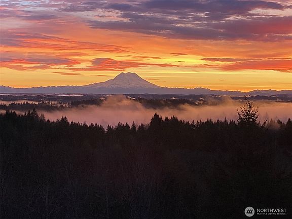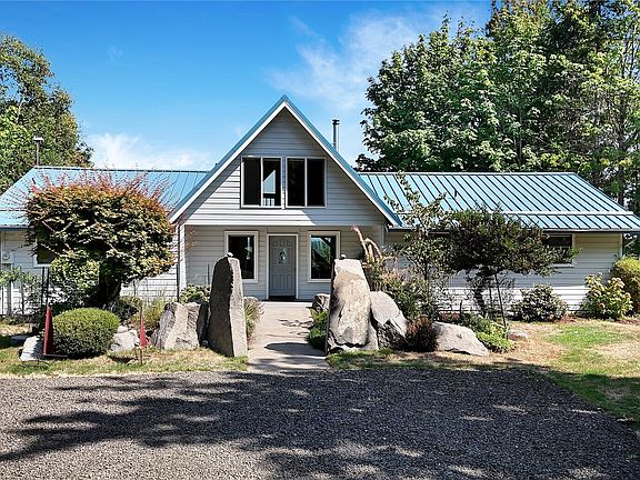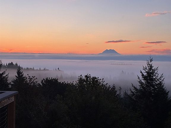 A true secluded gem & NW retreat awaits you in this custom-built expanded A-frame rambler on nearly 3 acres! Breathtaking Rainier & Cascade views across Delphi Valley will never be blocked. East-facing prow window-wall in living room flood the home w/ light, kept warm by the free-standing wood stove. Primary suite boasts vaulted ceilings, 2 private decks, jetted tub w/ a view, granite vanity, & walk-in closet. Kitchen features soaring ceilings, oversized island, & view out the glass sliding door to the deck. Updated .75 bath (Feb 2025). Mud/laundry room has convenient utility sink. Don't miss the heat pump, metal roof, solar panels, EV-charger ready carport, RV hookups, detached workshop, fire pit, & even an underground-container cellar!