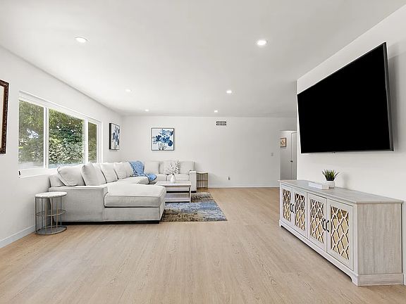 FULLY FURNISHED, AVAILABLE IMMEDIATLEY! Welcome to this newly remodeled modern 5-bedroom home, perfectly situated on a quiet cul-de-sac in Northridge (Sherwood Forest adjacent). Designed with comfort and style in mind, this home features sleek upgrades, spacious interiors, and thoughtful details throughout. An open-concept layout connects living and dining to a chef's kitchen featuring Bosch smart appliances, Calacatta Gold quartz counters with island seating, and a built-in bar perfect for everyday living and entertaining. The serene primary suite offers a dual-vanity bath, walk-in closet, and spa shower. Four additional bedrooms provide generous light and flexibility for family and guests. Smart comforts include Google Nest, Ring security, and a Samsung washer/dryer. Outside, drought-tolerant landscaping, a round (circular) driveway, and a 2-car garage add convenience. Enjoy cul-de-sac privacy while staying close to shopping, dining, parks, and top-rated schools an ideal turnkey choice for comfortable, stylish living. What are you waiting for?