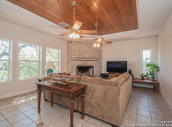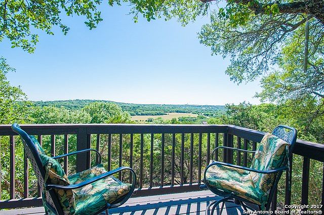 BREATH TAKING VIEWS FROM THIS SECLUDED, PRIVATE & QUITE 2 1/2 ACRE HILLSIDE ESTATE. CONVENIENTLY LOCATED IN CREEKWOOD RANCHES JUST OFF HWY 46 *3BR/2.5 BATH*MASTER SUITE DOWN*2 BR/1 BATH W/LIVING AREA UP*GAS COOKING*EAT-IN KITCHEN*FORMAL DINING AREA*W/B FIREPLACE*ENCLOSED DECK AREA W/HILL COUNTRY VIEWS*DECK OVERLOOKING POOL W/WATERFALL*2 FULL RV HOOK UPS*40 X 30 METAL BARN W/POWER, WATER & ENCLOSED SHOP*PRIVATE WELL W/2300 GAL TANK*MINUTES TO CANYON LAKE/GUADALUPE RIVER*$2500 UPGRADE ALLOWANCE PAID BY SELLER