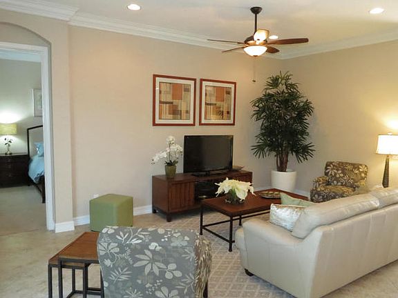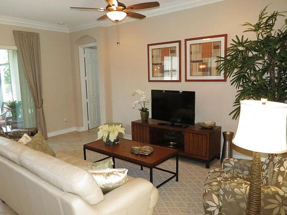 Fully furnished - move in condition. Located on private lot with tons of privacy and an extended/screened patio. Lots of upgrades including crown molding, accordion shutters, granite tops, wood cabinets and much more. Please call for a full list of upgrades.