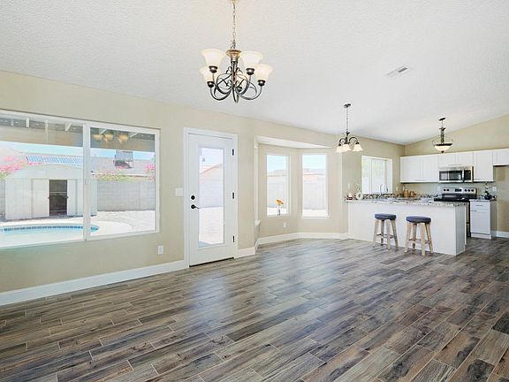 This is a completely remodeled home in a charming Peoria neighborhood. Walk in to wood look tile floors and dramatic vaulted ceilings. Kitchen has brand new shaker cabinets and granite counter tops. Custom wainscoting in the bedrooms and custom tile job in the master suite. The over sized lot has pool and full size RV gate that could easily fit a large boat and all your toys! Brand new roof with warranty included.