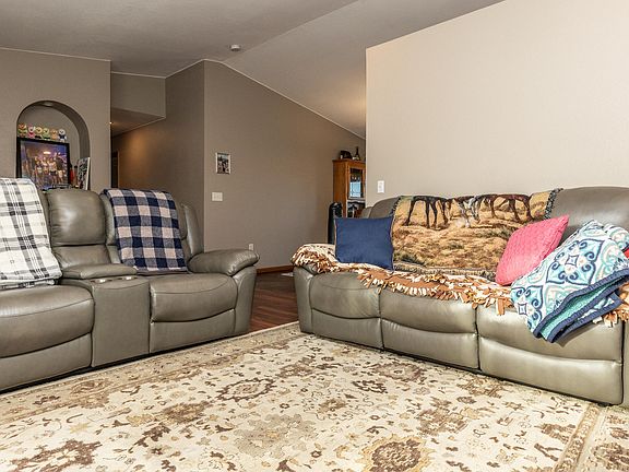 Located in a great area near the new school! In the upper level you will find a spacious living room, kitchen with a ton of cabinets with a corner pantry, dining room with a patio door leading to the deck with maintenance free railing, 2 bedrooms including the primary bedroom with a private bath which include dual sinks. There is another full bath on this level. You will love the walkout lower level with a spacious family room which has a beautiful gas fireplace and a wet bar. There is a laundry room, 2 additional bedrooms and bathroom with separate vanities. There are no backyard neighbors and the yard is fenced! There is an attached triple garage and a parking pad. There are many great features and upgrades throughout this home!