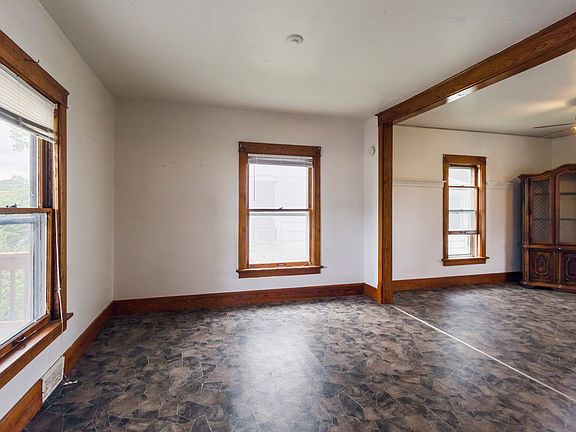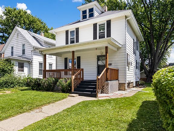 Two story home with a cozy front porch. This home offers 3 bedrooms and 1.25 bathrooms. The main level has hardwood floors underneath the linoleum flooring in the foyer, family room, and dining room. The open staircase leads to the second level with three bedrooms with hardwood floors. The full bathroom on the second level has a walk-in shower. Walk up attic access located in the third bedroom and is perfect for storage. Full basement with newer furnace and hot water heater. New gutters installed 2020. Shared driveway agreement in place.