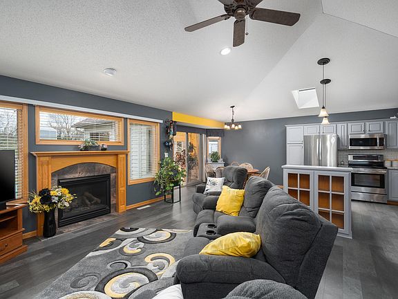 NEW ROOF & GUTTERS*. Welcome to one of Kasson's finest homes! A beautifully maintained 4 bed, 3 bath ranch home with standout features. An exceptional custom-built insulated 3-4 car garage, boasting over 1000 sq ft, 33 ft deep, and soaring 13 ft ceilings, complete with A/C and heat —an RV or Boat owner's dream. Inside, enjoy the open layout, cozy fireplace, sunroof, stamped front walkway & patio. The kitchen boasts quartz countertops, backsplash, and stainless-steel appliances. Retreat to the main suite with a walk-in closet and jetted tub. The lower level offers two bedrooms and a spacious family room. This home presents an all-perennial low-maintenance garden ran by a timed irrigation system that is beautiful in the summer and spring months. This home is ready to welcome you with comfort and convenience with bike trails and swimming pools just a stone's throw away.