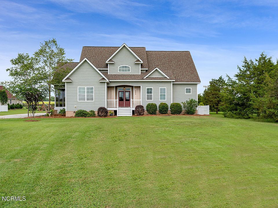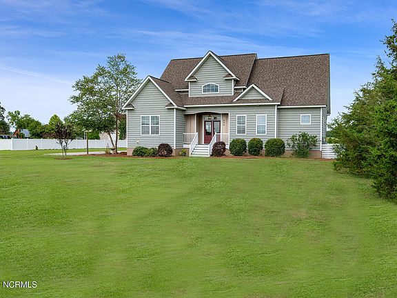 A charming tree-lined driveway sets the tone for this stately dream home. The living room comes complete with a gas fireplace, built-in bookcases, gleaming hardwood floors, and soaring ceilings that creates an airy, inviting atmosphere. The gourmet kitchen with stainless appliances (including gas stove) has granite countertops, a spacious center island and opens into the dining area. A separate laundry room with its own entrance adds convenience. The architectural details throughout are sure to impress with wall of windows that bathe the open concept space in natural light and flagstone tile hallway accents. On the main level, the luxury primary bedroom offers private patio access, custom built-in cabinetry, and an impressive walk-in closet. The ensuite bathroom is a spa-like retreat with a dual granite vanity and a huge walk-in shower. Upstairs, the beautiful pine wood floors lead you to a versatile loft area overlooking the living room. Enjoy the outdoors year-round on the screened porch with custom shades. The property also features an spectacular detached garage spacious enough for vehicles & hobbies. Experience charming luxury in this Ayden property, featuring three spacious bedrooms and three full bathrooms! Very large back yard with tons of space for outdoor activities