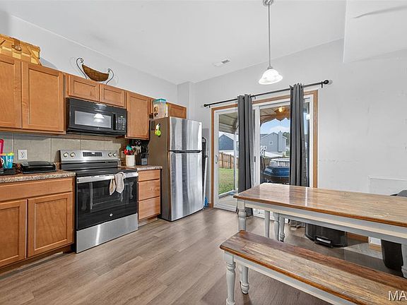 Large fenced backyardPatio and awningAbove-ground poolSpacious eat-in kitchenNewer stainless steel appliancesUpper-level laundry