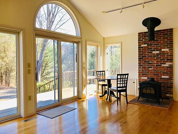- Din Dscrp: Flooring - Hardwood, Deck - Exterior, Exterior Access, Ceiling - Cathedral, Open Floor Plan, Wood / Coal / Pellet Stove