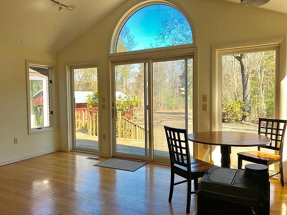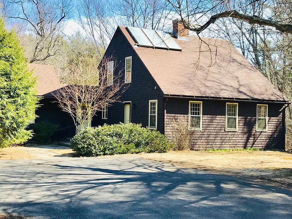 Warm, sunny spaces, both large and small overlook a peaceful, open back yard with woodsy views. Charming Cape styled home on an 8-acre lot with pond, adjacent to conservation farmland with Mt. Holyoke Range State Park across the street. Minutes to area colleges, downtown and major routes, it's an ideal location. A flexible floor plan sports a spacious living room with cathedral ceiling and fireplace, open dining room - kitchen, den with built-ins, study with built-ins, 2 bedrooms and full bath on the first floor. Two bedrooms and full bath are on the second floor. The walkout basement has a finished room with 3/4 bath - perfect as an office, playroom, guest space or studio. A three-season porch overlooking the woods and pond connects to a large deck, making this the ideal place for summertime entertaining! A rare opportunity to invest in this hidden gem.