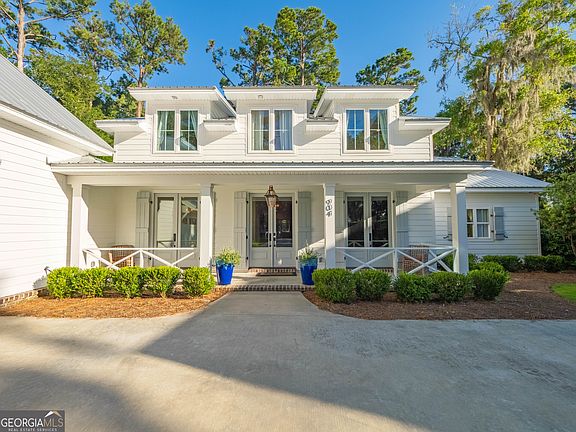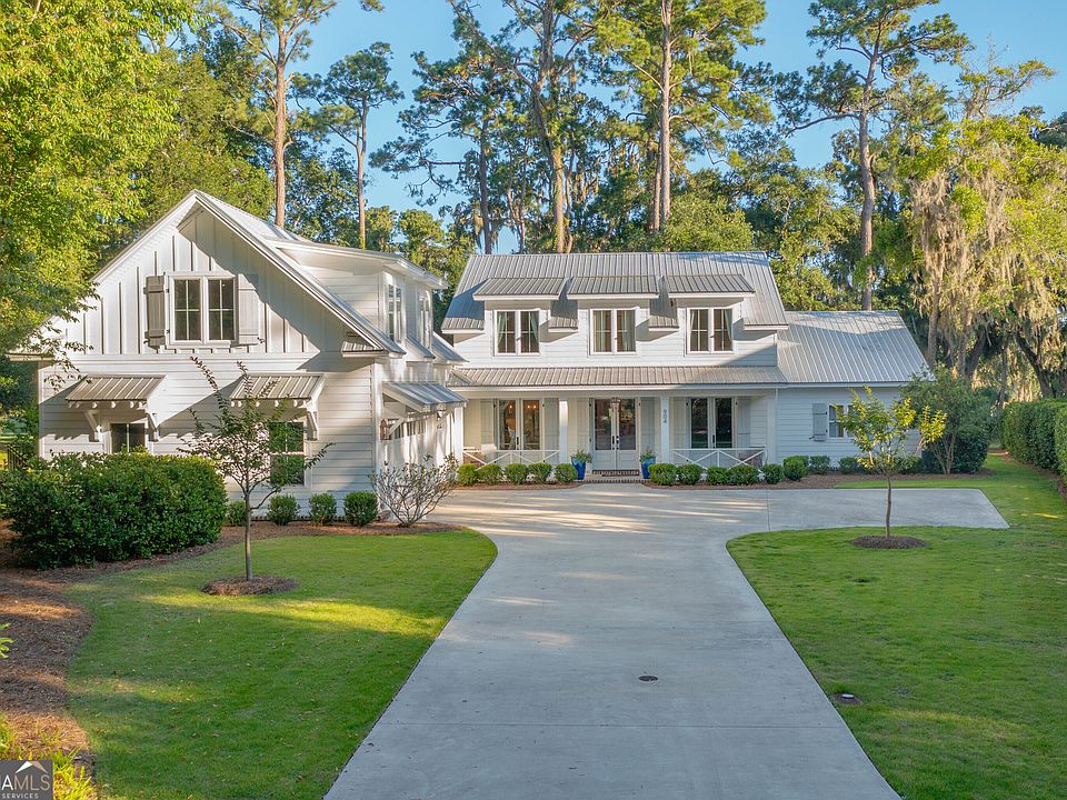 Tucked at the end of a quiet cul-de-sac in the gated coastal enclave of Hampton Plantation, this exceptional 2019 modern farmhouse pairs refined architectural design with the serenity of nature. Framed by ancient oaks and unfolding across a marsh front setting on the 11th hole of the King and Prince Golf Course, this home is more than just a residence-it is a sanctuary. A haven where privacy, elegance, and lifestyle come together in perfect balance. From the moment you enter, the light-filled layout welcomes you with a sense of calm-an open, curated design grounded by luxury LVP flooring, solid wood interior doors, and designer lighting throughout. The living spaces include a separate dining room for gathering and a large office that offers a quiet place to focus or reflect. The kitchen is the heart of the home-a true centerpiece where function meets elegance. Quartz countertops, a Cosmo gas range, soft-close cabinetry, farmhouse sink, generous pantry, under-counter microwave, and a charming coffee bar offer both beauty and efficiency, thoughtfully designed for everyday living and effortless entertaining. The open concept design incorporates kitchen, breakfast area, and living room, anchored by a gas-log fireplace. This heart of the home opens seamlessly to a screened porch that becomes a second living space-complete with a wood-burning fireplace and gas starter-framing marsh views that shift with the light and invite stillness as day fades to dusk. The main-level primary suite is a retreat within a retreat-elegant, serene, and designed with care. It features dual walk-in closets, double vanities, a soaking tub, water closet, and a beautifully finished shower. Upstairs, guests or family can enjoy three spacious bedrooms-one en suite and two sharing a Jack and Jill-plus a generous lounge-style living area with oversized windows that bring the outdoors inside. Above the garage, a 725-square-foot bonus room offers flexibility for a media room, gym, studio, or private guest hideaway. Practicality is elevated throughout the home with a generous laundry room and ample cabinetry designed for high-functioning daily use. You will also find tremendous storage throughout the home, including closets and built-ins that make organization both easy and elegant. The X flood zone provides peace of mind as well as substantial insurance savings. Every feature speaks to thoughtful craftsmanship-from the standing seam metal roof and impact-rated, energy-efficient windows to the tankless water heater, dual HVAC systems, and a 2.5-car garage with an enclosed outdoor shower. The fenced backyard is both private and inviting-a peaceful place for pets to roam or quiet mornings with coffee and birdsong. Here, nature is not just a backdrop, but part of the daily rhythm-deer grazing at dusk, egrets gliding across the marsh, and coastal breezes threading through the oaks. Yet, the home remains perfectly connected. Area amenities-including golf, tennis, pool, clubhouse, and Hampton Marina-are just a short ride away. And just a few miles south, the charm of island life awaits with access to beaches, boutique shopping, and beloved local dining-making this home both a quiet retreat and a gateway to everything that makes St. Simons so special. This is a turnkey, well-appointed home for those seeking a life of grace, ease, and meaning-a place to breathe, to gather, and to live surrounded by natural beauty. A place where every view is a gift, and every moment feels like home.