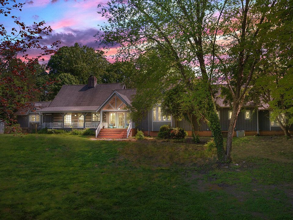 Welcome to Couch Hill Farm. Originally constructed in the 1990s as a family retreat, the cabin has been transformed into a 3,872 sq. ft. living space after the owners' retirement. Private residence or income producing potential for a rental retreat. In addition to the 3 bedrooms and 4 baths the home has 2 optional sleeping quarters. As you step into the home, natural light fills the expansive foyer, setting a warm and welcoming tone. The home seamlessly transitions from the foyer into spacious living areas. The great room, boasting floor-to-ceiling windows at the front and back, showcases unique ceiling features and a French limestone fireplace that is plumbed for gas logs. The gourmet kitchen is a culinary enthusiast's dream, featuring a six-burner DCS commercial range, two ovens, a grill top with a commercial hood is surrounded by handmade Mosaic tile from Spain, stainless countertops, three prep sinks, a commercial Northland refrigerator, and a Dacor wall oven with a microwave. Adjacent to the kitchen, a butler's pantry complements the space. A charming breakfast nook, accented with cabinetry, provides an inviting spot for your morning coffee. Flowing from the kitchen is a cozy keeping/dining area with a floor to ceiling wood burning brick fireplace, perfect for casual dining and family gatherings. The master suite offers a luxurious custom jetted tub and bidet. A private garden view and an Italian marble shower. For book enthusiasts, floor-to-ceiling bookcases in both the great room and master suite provide ample space for hundreds of volumes and family collectibles. The original cabin's casual dining area features display cases for antiques and collectibles, reflecting the owner's love for antiquing. Designer touches are evident throughout the home, including limestone floors from France, Italian marble and reclaimed heart-of-pine flooring, Kohler plumbing hardware, and wallpapers from distinguished brands like Schumacher and Stoheim and Roman. The home features four porch areas to enjoy the landscape and picturesque views, one is screened. The landscape is adorned with mature trees such as traditional and Japanese magnolias, camellias, and antique rose bushes, alongside various bird- and bee-friendly floral varieties. There are two driveways to for entering the home from either the front door or back. A potting shed equipped with tools and pots for all gardening levels adds to the property's charm. The pony barn, currently serving as storage, could easily be repurposed as a stable. The ''SHEE'' Shed, crafted from reclaimed barn wood, offers a nostalgic cabin experience and serves as a versatile studio and outdoor entertainment space around the firepit. This unique property is truly special and awaits its new owner. There was a smaller guest house on property that was sold in 2018. The gilt mirror in the Great Room and the antique cabinets that are currently attached to the wall do not convey. A limited number of furnishings are negotiable.