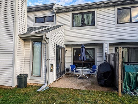 Super-sized, move-in ready 3 BR, 2 1/2 bath townhome with generous 27' living room / dining room full of light. Located at the end of a cul- de-sac, this home backs up to mature treed open space making the back patio an ideal spot for relaxation and privacy. New windows installed in March 2023 with transferable warranty. The kitchen was updated in late 2023 with a new ultra-quiet stainless steel dishwasher, Samsung electric range with WiFi control and a new built-in Samsung microwave all with multi-year protection plans. The new appliances are a perfect match for the stainless steel fridge, granite countertops, espresso granite composite sink and subway tile backsplash. The back room off the kitchen offers extra living space and features a wood burning fireplace perfect for cozy evenings. Upstairs the oversized master bedroom is the star of the show. It includes a sitting area, a generously sized walk-in closet and a full bath. Two additional bedrooms and another full bath round out the second floor. Other practical improvements include brand new hot water heater in March 2024, HVAC in 2019 and roof replaced in 2017. Community features include a pool and playground. This is not your typical townhome, come check it out before it's gone!