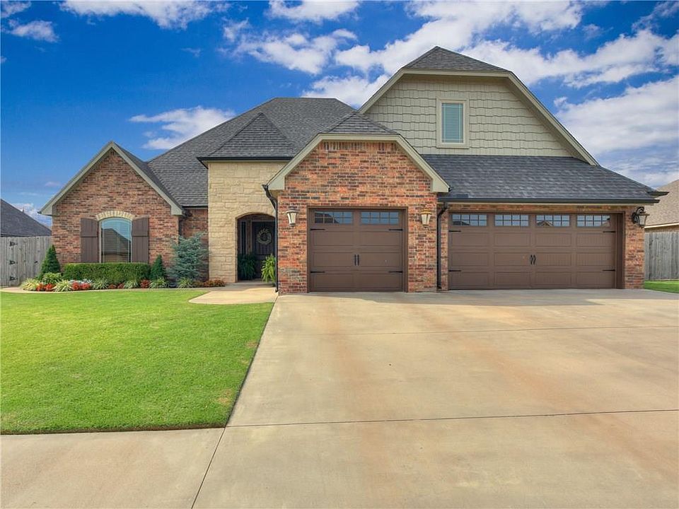 A beautiful exterior with bright landscaping greets you as you approach this inviting arched porch. A warm welcoming environment with rich dark floors, dramatic entry that opens to the great room. Study and half bath conveniently located at the front of the home. Kitchen features granite countertops, gas stove, island with seating, dark stained cabinets, stainless appliances. Custom wood shutters, floor to ceiling brick fireplace with gas logs. Master suite features jetted tub, double vanities, tile shower, & huge master closet. Laundry room centrally located. Two additional bedrooms with spacious closets and Jack & Jill bath. Bonus room upstairs perfect for family movie night. Covered patio and a large backyard with plenty of space for an entertaining area and to add a pool. Don't miss the opportunity to be the new owners of this home!
