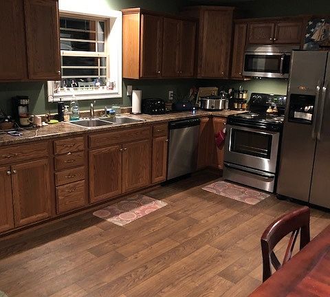 Amazing Lake, Wooded, and Farm Views. Large, one bedroom, one bathroom, with about 1000 SF. Open floor plan with fully equipped kitchen. Laundry room appliances are also included, plus laundry room contains huge pantry with shelves and counter space. Deck has view of wooded, 10 acre field and view of Melton Hill Lake! Very private area. We maintain the yard and ask you to maintain only the flower beds. Oversized one-car garage, too.