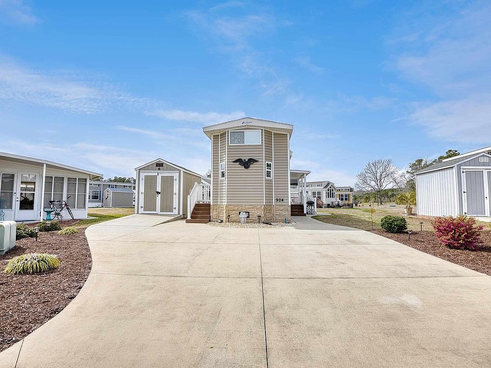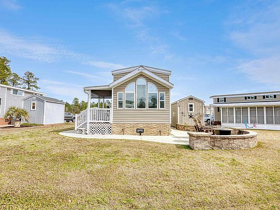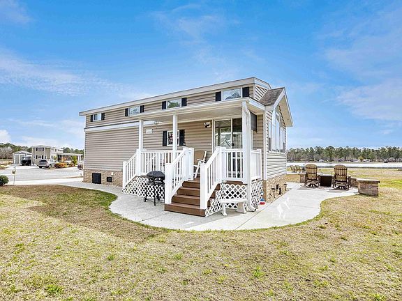 Beautiful one bedroom/one bath home at Willow Tree RV Resort & Campground. Pull out pantry draws, electric remote fireplace, programmable thermostat, 30 gallon water heater, tile backsplash in kitchen and bathrooms, Exterior door in bedroom to outdoor landing/steps, attached covered porch with drop down sunscreen, shed with work bench, storage cabinets, portal heater/air unit, french drains. Window tinting on windows. This is a 2016 Kropf Island Super Loft Park Model 12' x 39'. There are 42 homes in this community and there will not be any more built. This is a 5 star resort with all the amenities you could ever ask for. 36 acre Spring fed lake stocked with plenty of fish for catch and release. Pool, hot tub, laundry facilities if needed, fitness room, Campground office/store, pickle ball courts, hiking, golf cart and biking trails, pool table and ping pong in recreational room, kayaking available and small boats for rent, playground, shuffle board, boat dock with rental boats, dog park, separate dog beach and so much more. Just a 20 minute ride to the beach. Close to food stores. Quiet country living in this 5 star rated resort and only minutes from everything. Beautiful patio with beautiful views of the lake. Fireplace in living room. Extra storage area for boat/camper parking located here at Willow Tree for an additional charge.