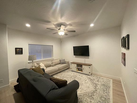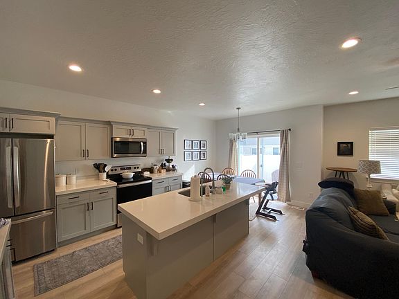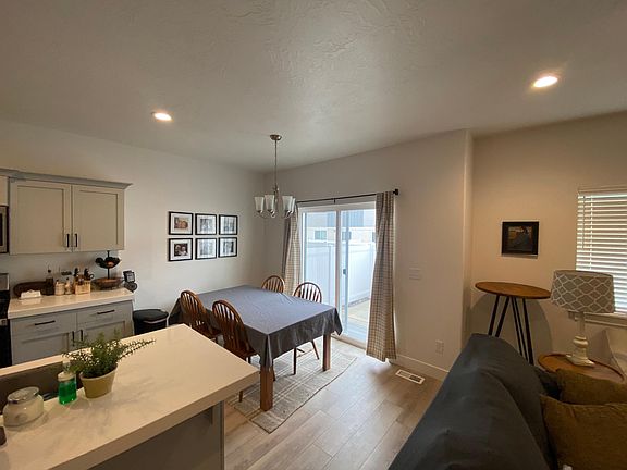 A 4 year old townhouse, 3 Bed 2.5 Bath, in a great neighborhood just minutes away from two freeway entrances (500 E and Pleasant Grove Blvd). 1,650 livable space, with an extra 600 in the partially finished* basement. Maverick, Quick Quack Car Wash, and Bowling just around the corner. Macey's, Neighborhood Walmart, and CVS 5 minute drive. Costco, Target, and Home Depot/Lowe's 10 minute drive. Tons of great food options around, chains and local joints too! Main floor has an open floor plan that actually has enough room to put in a kitchen table. A real sectional would fit nicely as well in the living room area. High ceilings on main floor with vaulted ceilings on second floor. Master bedroom features a spacious bathroom with double vanity and walk in closet. Guest bedrooms don't feel like a shoebox, fitting a queen-size mattress comfortably, and have large closets with extra storage space up above. Laundry room is wonderfully placed between the bedrooms on the second floor and comes with a washer and dryer hooked up and ready to go. Cosy reading nook at the top of the stairs across from the guest bathroom and laundry room. Two car garage has fit our Toyota Rav4 and Subaru Impreza without denting our doors or making us suck in our stomaches while getting out of the cars. You can even keep two city garbage bins in the garage while the cars are inside (or opt out of the bins and just use the HOA provided dumpster a few houses down). The back patio is large enough to fit a grill, fire pit, and even a table with some chairs! Fully fenced off with a gate that connects to a communal grassy area between the units. There is a small play structure across the road from this unit, a large grass field to the west of the units, and horses down the road to the east. Makes walks and outdoor time with kiddos much easier and fun! *Partially finished basement: drywall is up, the walls and ceiling insulated, and lights installed making it a great option for an at-home gym, ping pong arena, or even just some extra storage. Owner pays HOA. Renter covers utilities (gas, water, waste removal [optional, HOA provides dumpsters], power, wifi [wifi $79/month]). 12-month lease. Two-car garage, with room for two cars on driveway as well. Just don't block anyone else's driveway, sidewalk entrances, dumpsters, or mailbox. HOA covers snow removal on the street, but renter is responsible for their own driveway and sidewalk. HOA covers lawn care. No Smoking. Weed, cigarettes, nothing smoked except delicious meat on the patio. Security deposit ($2,300) and last month's rent ($2,300) due at signing. Any deductions from the security deposit will be verified to the renter with applicable receipts. Approval subject to background check, credit, employment, income, or rental history. If you're worried about one or more of these details, please reach out before paying for an application.
