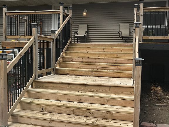 Check out this 4 bedroom home just a block from the golf course and city pool! This split level home sits on 3 lots with a partially fenced back yard and large storage shed, almost 1/2 acre lot. Plenty of room here for a large garden and on a corner lot. The main floor boasts a large living room with picture window and opens to the dining. The kitchen features ample cabinet storage, stainless steel appliances and a patio door leading to a new, over-sized deck. 3 main floor bedrooms share a full bath with tile floor and a linen closet. The lower level family room is very spacious with plenty of natural light from the garden view windows. The lower level also features a large bedroom and a full bath currently in progress. The attached 2 stall garage is heated. Don't miss!