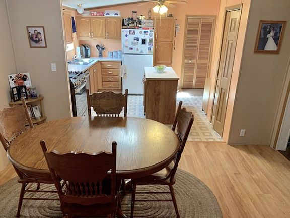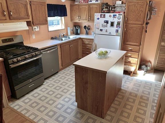 Entrance: Front deck has afternoon shade and opens to living room. Living Room: Cathedral ceiling gives the room an open feeling. Laminate floor painted walls, ceiling fan. Dining Room: Opens to living room. Continuouss laminate floor, painted walls and opens to kitchen. Kitchen: Island cabinet bar, new stainless dishwasher, gas range, refrigerator, large pantry and lots of cabinets and counter top. Master Bedroom: Large room has great closet space, painted walls, ceiling fan, carpet, plus private LUXURY bath. Corner garden tub, new vanity with brushed nickle fixtures, tile decor backsplash at vanity and garden tub. Bedroom: Kids bedrooms have painted walls, nice carpet and closets. Family Room: Has laminate floor, painted walls, cathederal ceiling,ceiling fan Additional hand constructed room is a side porch which has entrance to the fully poured basement. 9' tall sidewalls, cement walls, steel i beams for strong construction. This basement DOUBLES your living space! There is a 4th bedroom in the dry basement too! Privacy fence back yard and lots of room for parking for your friends and family!