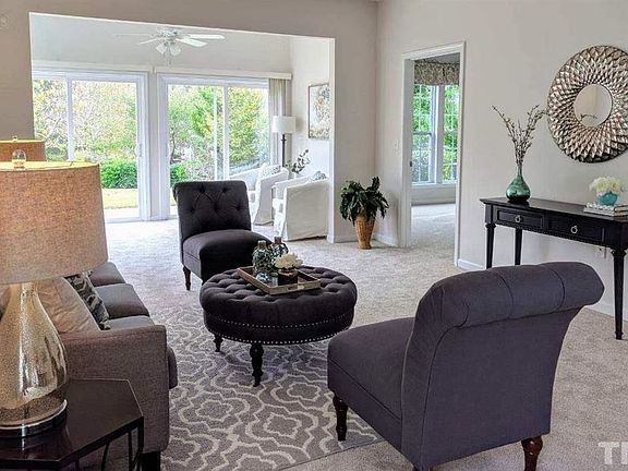 Beautiful one-level home completely move-in ready*All new paint and carpet (Fall 2019)*Larger than average lot for 55+ Carolina Preserve community*Fabulous view from the back "sunroom"*The open floor plan is easy to enjoy and side windows bring in lots of natural light*Stainless steel appliances*Charming breakfast space in kitchen*Large attic over garage which is special in this neighborhood*Cary address but low Chatham County taxes!!*Low HOA fees include, pool, fitness center, walking trails and clubs!!
