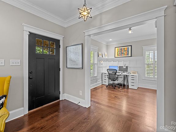 This gorgeous home is the perfect blend of modern conveniences while maintaining the character & charm of NoDa. Rebuilt in 2007, custom features are throughout this stunning home. Formal dining & living rooms. The kitchen was remodeled in 2018 and features stainless appliances, double oven, gas cooktop, tiled wall & open shelving.Great room w/built-ins and fireplace.The primary bedroom suite is on the main level and opens to screened-in porch. Primary bath with spa-like shower and tub room. Upstairs are three additional bedrooms and a full bath (bath remodeled 2021). One bedroom is huge and the perfect flex space or bonus. Another bedroom opens to upstairs deck.Detached 2-car garage w/commercial grade sink, water heater & permanent stairs to upstairs storage area. Fenced yard. Solar Panels 2022-This home is Extremely Energy Efficient & has battery backup.Conveniently located to Uptown. This is a rare opportunity to live within walking distance to NoDa and restaurants, breweries & more