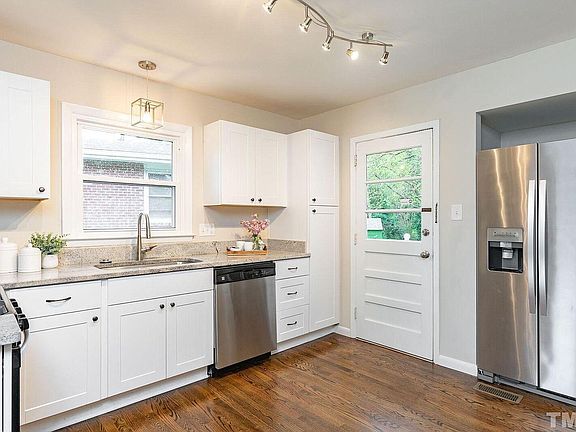 This charming, newly renovated home is just 10 minutes from downtown, ideally located near WakeMed and Walnut Creek, with easy access to the beltline for ultimate convenience. Offering nearly 980 square feet of stylish living space, this home comes equipped with brand-new, high-quality appliances (including a washer and dryer) that have barely been used. With 2 inviting bedrooms, an additional versatile space that can serve as either a third bedroom or a dining room, and a full bathroom, this home provides the perfect combination of comfort and flexibility. Situated on a spacious 1/3-acre lot, you'll love the expansive backyard an ideal spot for playing fetch with your dogs or relaxing with friends. Plus, the home includes a generously sized storage area at the back, perfect for stowing bikes, gardening tools, or outdoor gear. This home blends comfort, style, and convenience, making it an ideal choice for your next move! Renters are responsible for utilities, including water, electricity, and gas. The home is smoke-free, but pets are always welcome! For your convenience, the first month's rent will be prorated.