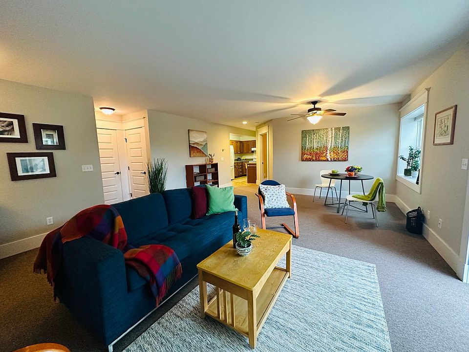 FULLY FURNISHED 30+ Day RENTAL Come home to this Hilltop District retreat above Old Town Anacortes, where Puget Sound views, waterside parks and downtown eateries, shops, pubs, music and fun are all just a stroll away. This well-appointed, fully furnished, apartment incorporated into the quiet, lower level of a stunning 2006 Craftsmen main home, offers a serene, private retreat with all the extras needed to create an excellent short-term housing experience. Set among gorgeous historic homes, this large corner lot affords your own off-street parking space leading to the large, private walled, patio entrance away for ultimate privacy. The freshly painted, 900 square foot open living space designed with large light-filled classic picture windows and tons of storage, welcomes many lifestyles. Cozy and comfortable radiant floor heating is included along with w/s/g and internet plus your own washer/dryer. The full-sized, well stocked kitchen with dishwasher and microwave welcomes creative chefs or fast food aficionados. Rest peacefully in the low-light bedroom retreat with quality mattress. Greet the sunrise or relax after work on the partially covered, large, lit patio with a dining area, gas fireplace, and BBQ or enjoy the large side yard with apple, pear and cherry trees. Just blocks from the Guemes Ferry too. Recreation abounds right out your front door or within a short drive. Explore loads of beaches, idyllic parks, trails, lakes and the 3000 acres Anacortes Forest Lands. Boating, sporting events, festivals, live music and a summer farmers market add to your to-do list. Or hop to the San Juan ferry just minutes away and explore the enchangting islands. Temporary 30 day minimum to 90 day maximum rental duration (with potential to increase duration). All utilities included as provided at the start of the lease. Non smoking only. Separate lease agreement signed at start of rental.