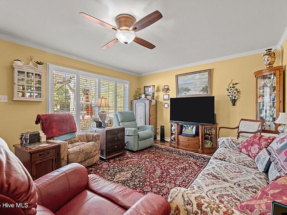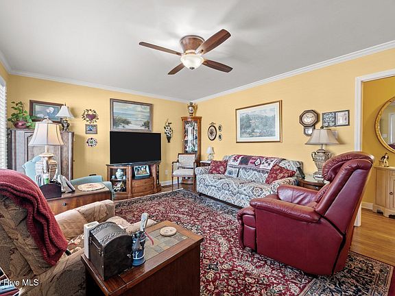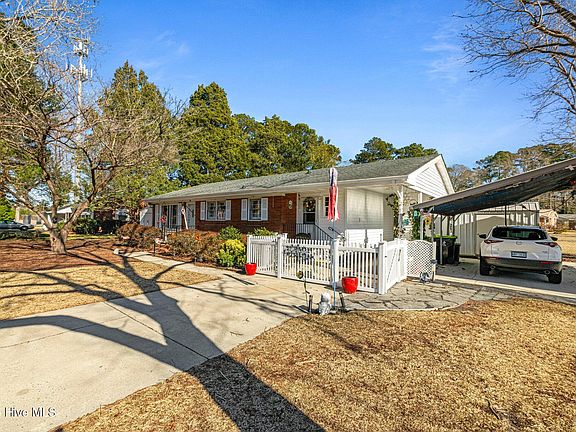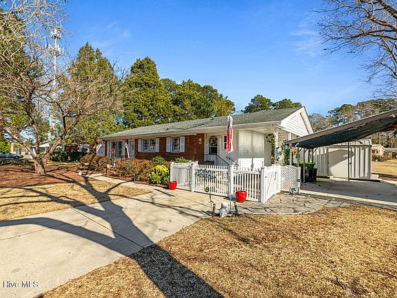 No city taxes or HOA!!! So many bonuses in this beautiful, extremely well maintained home. It has been family owned since it was built. Updated kitchen with new cabinets, appliances and granite countertops in 2019, new roof in 2019, new heat pump 2024. Hardwood floors throughout living areas, kitchen and bedrooms. 13x11 sitting room added to the principle bedroom. Added large 2nd full bath with walk in shower in 2019. Crawl space and attic sealed for energy efficiency and moisture control. Custom wood shutters on front windows. Refrigerator in kitchen, washer and dryer will convey. Living room, principle bedroom, window a/c and outlets are wired for a generator. Carport is wired for fast charging electric vehicles. Covered porch and back yard are fenced. 2 sheds add plenty of storage space. Just minutes from shopping, restaurants, MCAS Cherry Point, etc. Conveniently located between the beautiful Crystal Coast beaches and historic New Bern.