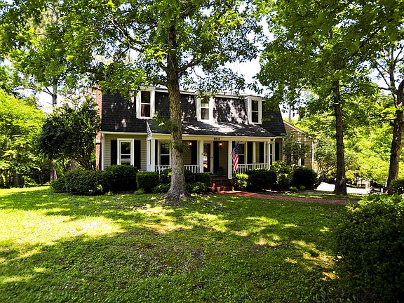 Absolutely stunning 4 bedroom home located in the pristine and highly desired Country Club Acres! Home rests on a quiet cul-de-sac with a long drive and charming brick walkway! Enjoy the cool Carolina evenings on a covered front porch with fans and shade from mature trees! Foyer reveals rich wood floors and fresh paint! Plenty of space for the entire family and guests on the main level- formal living room, formal dining room, great room, sun room and eat in kitchen! Both the formal living room and formal dining room boast beautiful wood floors, fresh paint and views of the front entrance! The great room, complete with cozy fireplace, is the perfect spot to relax and unwind offering easy access to the kitchen, sun room and outdoor areas! The chef of the family will absolutely love this open and airy kitchen featuring ample counter & cabinet space, breakfast bar, pantry, appliances to convey, dining area, breathtaking views of the grounds and side deck access! Laundry made easy with a large laundry room including cabinets and farm sink is located just off the kitchen! A lovely sun room can be found at the back of the home and offers gorgeous hardwood floors, panoramic windows showcasing a private, fenced back yard and access to the rear deck! A central powder room is convenient to all main level areas! Retreat upstairs to the Master Suite- enjoy plenty of natural light, fresh paint, ceiling fan, his&hers closets and private bath! Placed around the landing you will find 3 additional, ideally sized bedrooms also with natural light option, fresh paint, ceiling fan and closet space! A second full bathroom is also found at the landing area! But that's not all! This home has an over sized, detached, two car garage with second floor loft- a great spot for extra storage, workshop and/or game room! The fenced in yard backs up to hardwoods creating a gorgeous, natural privacy fence! This home is ready for you to make memories! Schedule your personal tour today!