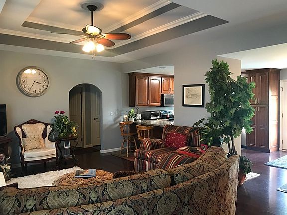 More pics coming soon!! Beautifully maintained home in the gated community of Eagle Point Estates. This 3bd/2bt home offers a split bedroom floor plan with many added features such as a beautiful double tray ceiling in living room, recessed lighting, beautiful ceiling fans and accents. The spacious master ensuite offers a large walk-in closet, specialty ceiling, as well as a soaking tub and large separate shower. The kitchen features a snack bar and stainless steel appliances. A large family room has been added to this home. Enjoy relaxing out back on the covered patio. The backyard is fully fenced for privacy and you will find plenty of storage space in the 20x10 storage building.