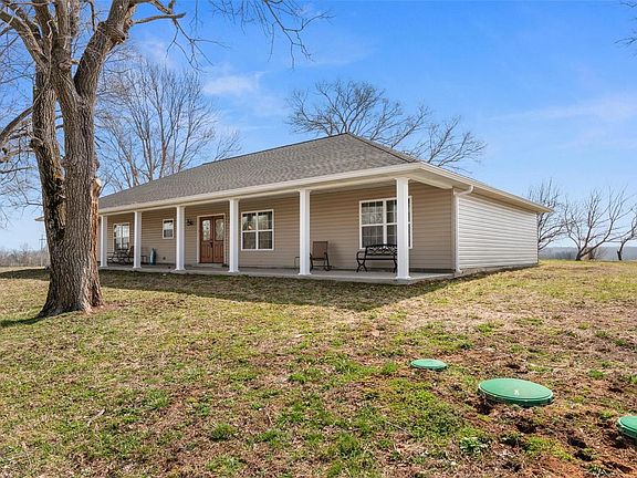 VERY MOTIVATED SELLERS! Welcome home to this incredible farm! With over 800 FT of HIGHWAY FRONTAGE on 8.8 UNRESTRICTED ACRES you can easily create your own homestead! 1 yr old home features a huge kitchen with solid surface counters, SS appliances, breakfast bar, dining area, open floor plan, crown molding throughout and highlighted tray type ceiling areas. Master bedroom has his & her closets, with one doubling as a reinforced, secure storm shelter. Anderson windows throughout & lifetime warranty flooring (excl. carpet) The 72 feet covered front porch is ideal for sipping your morning coffee or having a lazy Sunday afternoon. Circle driveway leads to all your outbuildings. 5 total w/2 of those being new pole barns (25x52 & 25x55). In addition to your 3 car heated/cooled attached garage there is a 4 car detached. Property is fenced & cross fenced, has a half acre stocked pond & established apple, cherry, pear & peach trees along with many flowering shrubs.New hot tub stays too!