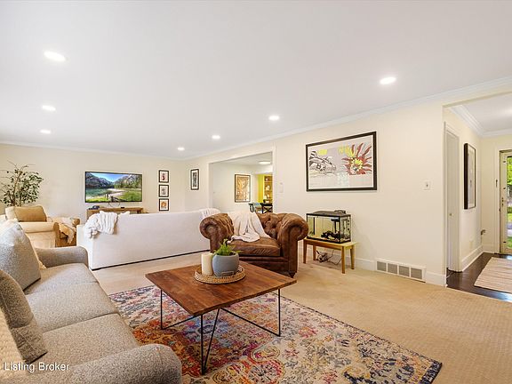 Located in the Broadfields in the heart of St Matthews, this mid century modern and updated ranch with an open floor plan won't last long! Move in ready with 2 beautiful remodeled full bathrooms, 1 half bath and 3 bedrooms including a spacious first floor primary with ensuite. Cooking and entertaining in the updated kitchen should be easy with GE Smart appliances, a dine in breakfast nook, optional bar stool seating with an open concept into an extra large family room where one side can also be utilized as a dining room if needed. The spacious basement great room has custom builtins, a small wet bar and French doors that lead to the perfect patio oasis. The large fenced, private back yard also has extended parking. The large 2 car garage has a 240V plug car charger that can also be used for other heavier electrical needs. A nice remodeled laundry room with plenty of storage finishes out the basement. Be sure to check out the entire list of updates and improvements. Don't miss the chance to see this gorgeous natural light filled home so make your appointment today!