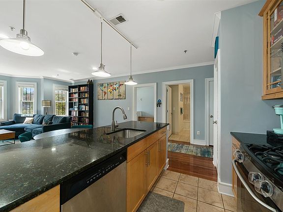 Beautiful 2 bedroom 2 bath condo with deeded garage parking space #40. This unit features hardwood floors throughout, recessed lighting, central heat/air with Nest Thermostat system as well as full size in unit washer dryer. Kitchen contains maple wood cabinets, decorative backsplash, stainless steel appliances - gas oven/range, microwave, dishwasher, refrigerator along with granite breakfast bar / counter tops. A master bedroom with en-suite bathroom and his and her closets. The second bedroom connects to the Jack/Jill bathroom with jacuzzi bathtub and shower. The owners will enjoy access to the building's private gym and court yard, which provides two gas grills for common use. Building is located around the corner from Shoprite, and is near several parks and daycare centers with convenient access to the light rail and bus lines for an easy commute.