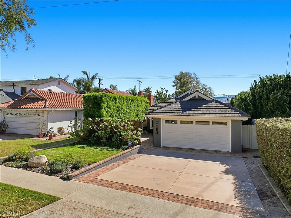 Modern one-level home with 4 spacious bedrooms, big backyard, and walking distance to the beach or zip down on your e-bike in 2 minutes. Beautifully designed home with wood floors, a fireplace in the living room, newer KitchenAid appliances, recessed lighting, dual-pane windows, and plantation shutters. Gorgeous, bright, and large primary suite features a walk-in closet. One bedroom has been converted into a separate family room with a slider opening to the backyard. Many upgrades have been made throughout, including a 4–year–old steel roof, a newer furnace & AC system with ducts, a complete new water filtration system, a tankless water heater, and a new garage door opener. In addition, there is a convenient rooftop deck with furniture, an umbrella, and a new deck surface, which is a perfect place for happy hour. The private backyard is ideal for entertaining or throwing the ball. If you need more room, Alta Vista Park and school is across the street. For convenience, there is a cute “she shed” in the backyard. Also, the price may include the washer and dryer.