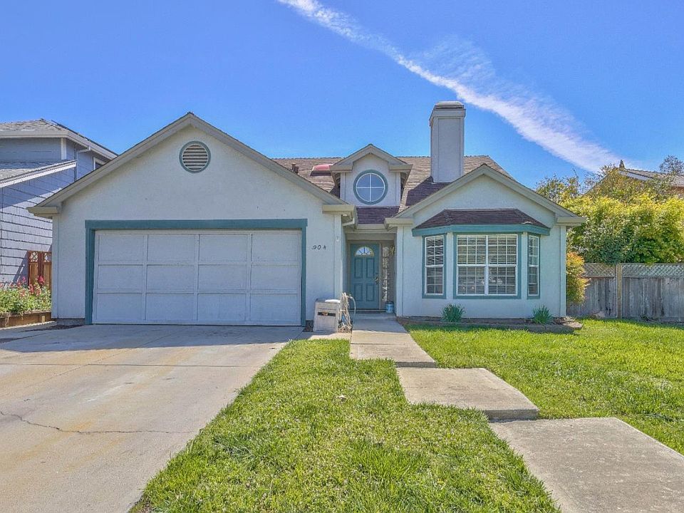 Beautiful 3 bedroom/2bathroom 1682sf Creekbridge home in North Salinas! This single story home features high ceilings & custom tiled floors in entry, family room, kitchen, dining nook & bathrooms. Open kitchen area with family room & skylight along with dining nook with lots of windows. Formal living room & dining room separated by walk around wall with gas starter Fireplace (currently has mantel cover on it). Master suite has a walk in closet, glass slider to the backyard deck along with master bathroom with double sinks, tiled shower stall including herringbone pattern on shower floor. Guest bathroom has skylight & also has a big shower stall with built-in seat. Laundry room with cabinets conveniently located near bedrooms. Hall has extra built-in cabinets for extra storage. Great entertaining backyard patio with pavers, deck & lawn area! (Portable kitchen island does not convey, SF/Lot/Age/School not verified by agent)