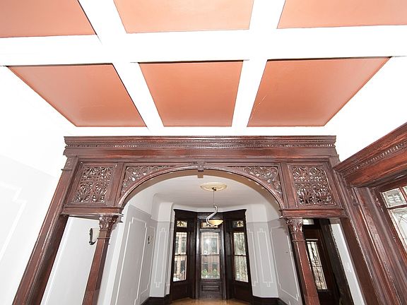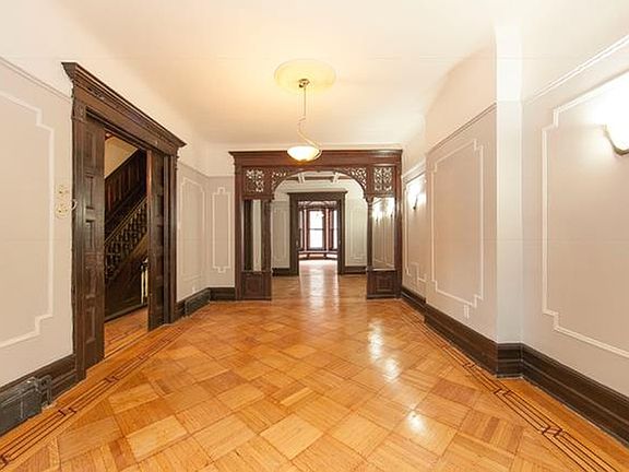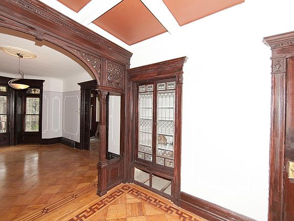 This Grand three story limestone with garden and original pre-war details is 20' wide.by 48? deep with a very large and over sized back yard perfect for entertaining It is located in the crown Heights Historical District It has the original pre war details throughout such as: wainscot, oak floors, high ceilings, wood paneling, wooden staircase with banisters, windows in each room, excellent closet and storage and arches all meticulously restored to its original luster. The handsome limestone is setback and has a wrought iron gate. It has the original exterior, traditional stairs and two entrances. One stair leads to the Parlor floor entrance that has two double doors with period glass window panes and wood paneled walls. On entering the parlor floor there is a magnificent original wood staircase with banister and wood paneled walls. The family area is on the first floor and it has a open windowed-eat-in-chefs kitchen with Caesar stone counter tops stainless steel appliances, separate dining area, laundry, guest bathroom, shed/storage and living room. The wood work and floors are original and have been fully restored. The original herringbone pattern with accent trim compliment this magnificent home. The second level has the over sized master bedroom that has original wood paneling, window frames, walk-in closets and a pass thru bathroom en-suite.. bay floor to ceiling windows with original storage compartments. The top floor is a 3-bedroom rental unit with fully renovated kitchen and baths with the same original detail and character and the rest of this immaculate limestone mansion. . The basement is the full size of the house and boasts 8 foot ceilings. Located in one of the most sought after residential neighborhoods in Brooklyn which is also architecturally renowned. This handsome limestone is surrounded by handsome and well maintained limestone townhouses on a lovely tree lined block.