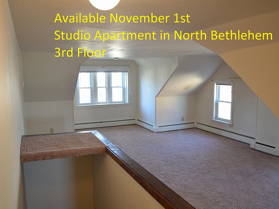 Large studio Apartment on 3rd floor available September 1 in North Bethlehem on Linden Street. 15 minute walk to historic downtown Bethlehem, Sands Casino, Lehigh University and Moravian. Off street parking lot, Free hi speed wireless internet on site (Saves you $75 month). Non smoking unit, no pets. 1 year lease. You will need 1st month and security deposit to move in = $1,550. Tenants pays for gas (Heat and Hot water and stove) and electric. Looking for quiet responsible tenant with solid job history. Landlord lives on site on 1st floor. Message for Info. This is a studio apartment, meaning it does not have a separate bedroom, the living room and bedroom are all one big room. Very cool, cozy apartment. 1 year lease. You will need 1st month and security deposit to move in = $1,550. Tenants pays for gas (Heat and Hot water and stove) and electric.