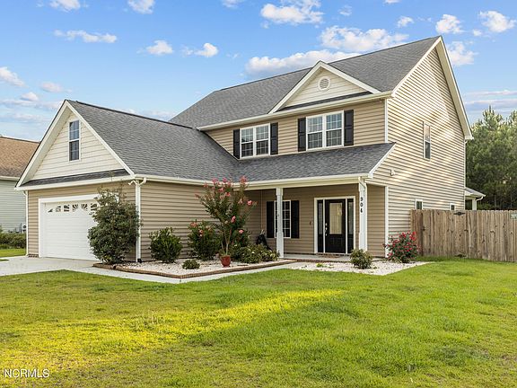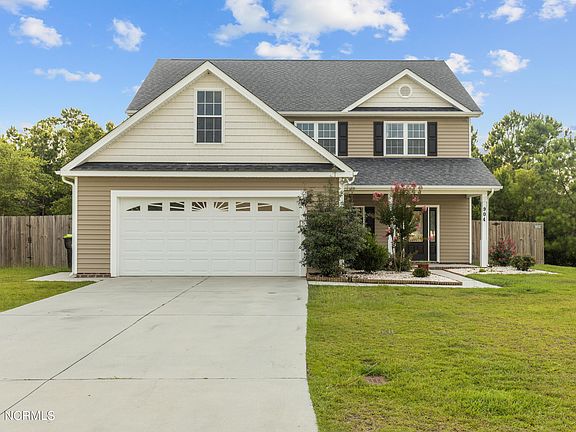This beautiful 5-bedroom home, located in the highly sought after neighborhood of Halls Creek North, is ''move in'' ready!! It offers tons of flexibility with two master suites, one upstairs and one downstairs. All the bedrooms are spacious with roomy closets. Do you have a big family or like to entertain? Enjoy the generous dining room with beautiful wainscot or cozy up to the living room fireplace for a lively discussion. The kitchen has granite and a beautiful backsplash and plenty of cabinet space with a center island. There is new paint and carpet throughout so the only thing missing is you! The large fenced-in backyard provides plenty of space for all your dreams. There is NO SEPTIC so the possibilities are endless with what you could do to create your own outdoor living! Conveniently located between Camp Lejeune and Emerald Isle, you can have ''fun in the sun'' on the beach while being close to shopping and work. What more could you want!!Don't miss the secrete hideaway - just walk through the back gate of the backyard! It's a MUST SEE! Book your showing today before this home is gone!!