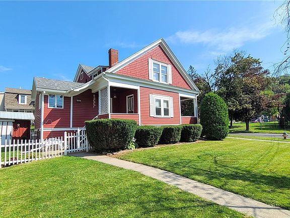 Fall Creek landmark, "red house on the corner", is on the market for the 1st time in 64 years. Perched on a corner lot, overlooking the grounds of Fall Creek Elementary School, and known for its curbside charm and legendary holiday light display, this enchanting home is now searching for a new owner. Inside you will find matching charm with hardwood floors, built-ins, natural woodwork, a formal dining room, wood staircase, 2nd floor sitting area, more. Once a 3 bedroom but currently a 2 bedroom. Separate doors and closets still in place to convert back to a 3-bedroom home. Plenty of storage with a walk-in attic, large closet and a full basement. Wonderfully updated kitchen with rich shaker style cabinets, solid surface counters, stainless steel appliances plus a built-in buffet with glass fronts. Room for a breakfast table. Enjoy the sights and sounds of Fall Creek living from the deep classic front porch highlighted by natural wood wainscoting and a traditional large slate walkway. Across the street you will find Fall Creek Elementary School and its large playgrounds and just a short walk away are the Ithaca Falls and TCAT bus line.