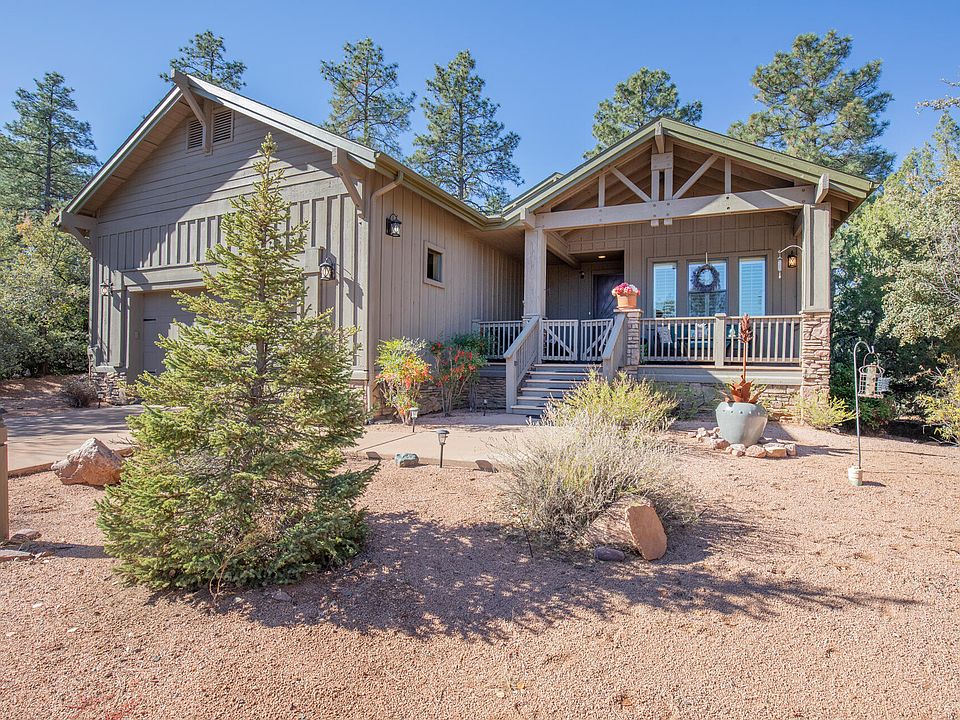 Move in ready! Located on a cul de sac in the Chaparral Pines Golf Community. You will find this immaculate home that was built with many upgrades and recent modern updates, you will not miss the pride of ownership this home has to offer. A covered front deck with Mogollon Rim Mountain Views greets you upon arrival. Enter the foyer to a vaulted tongue and groove ceiling, open floor plan, great room/kitchen area with large granite counters, beautiful shaker cabinets and clerestory windows. Formal dining room, generous primary suite with dual vanities, separate tub, shower, and walk-in closet. Two guest rooms and an additional bathroom. Enjoy the mild four-season climate outside on your private, quiet, covered patio situated among towering Ponderosa Pines.