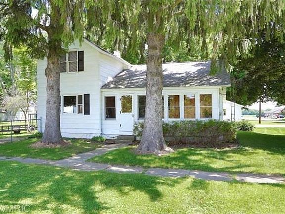 More for you Money Enjoy the village living in this farm style home on a large shady corner lot. Lot is totally fenced-great area for pets, children or just family gatherings. Great kitchen with plenty of cupboards-lots of counter space-opens to eating area and living room & three seasons porch, adjoining 1st floor laundry. Bedrooms do not have closets but main floor has loads of closet space in mud/pantry area and bath-separate ware robes could always be used. 2 stall detached garage has its ow n furnace, power, electric and plumbing, has been used to run a small business. Additional shed for extra storage with cement floor is now available. Nice package for family living-Call today!